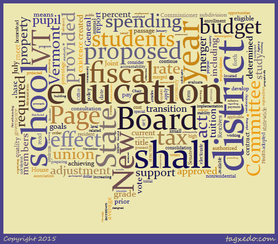 The bill does have some promising pieces which I think will help inform future reform efforts. The first is an adequacy study to be done this Summer which was proposed by a group of folks from Central Vermont led by Fayston School Board Chair Heidi Spear. Representative Ann Manwaring also crafted language to create a joint over site board for education which will be led by the chairs of the education, finance and appropriations committee. Representative Mitzi Johnson also proposed legislation that would allows towns to designate up to three high schools.