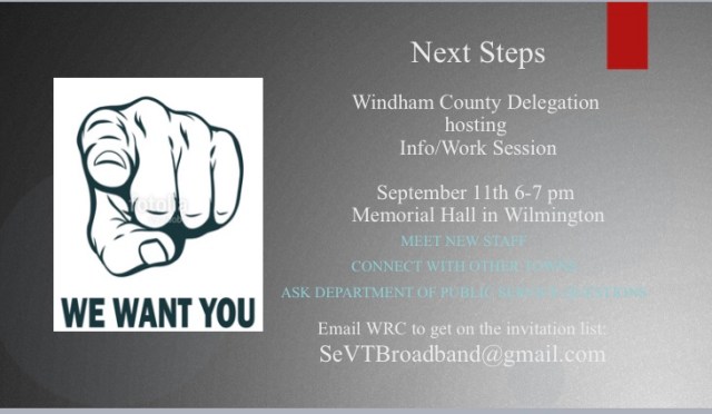 The Windham Regional Commission has agreed to act as a contact recipient for interested parties. If you would like to be notified of follow up information please send an email with your contact information to: SeVTBroadband@gmail.com