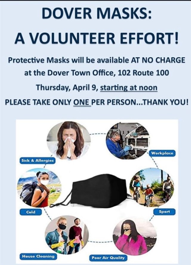 The Vermont Department of Health has come out with new guidance recommending face covering when leaving your home. Many groups are making masks and in Dover you can pick up a free mask at the Town Offices. I made my first trip out to Shaw’s today for paper towels and wore a mask. Yes, quite surreal.
