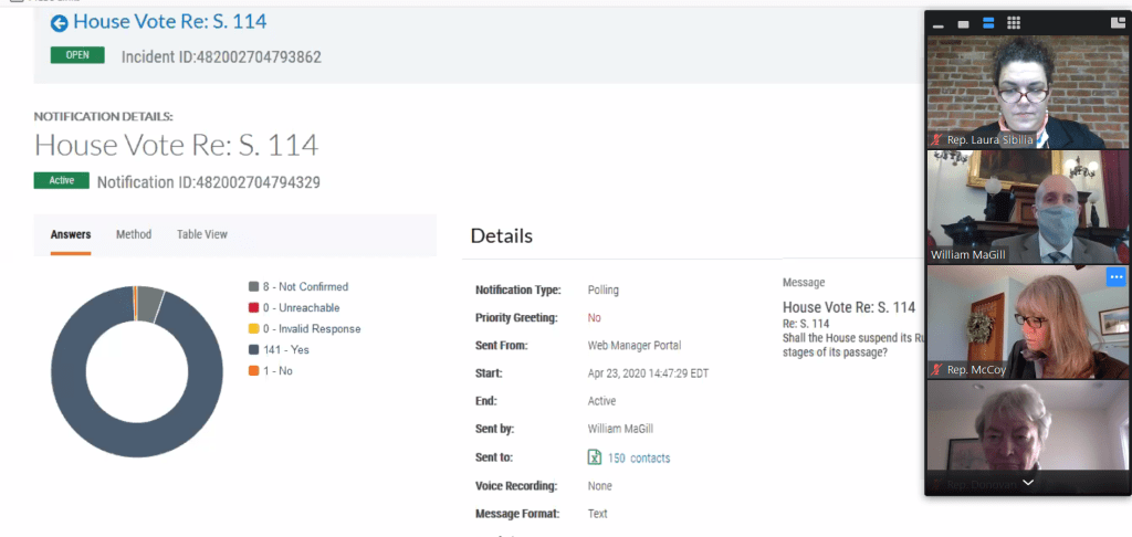 Our immediate goals were to take up bills needed to deal with the effects of the pandemic which included: voting to change our rules so we could vote virtually, allowing for an expansion of the regular period of time the Treasurer can borrow between funds to pay bills, allowing for wills to be done virtually.