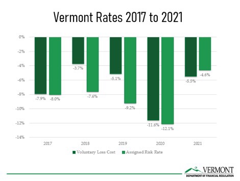 VERMONT BUSINESSES TO SEE DECREASE IN WORKERS’ COMPENSATION INSURANCE FOR RECORD 5TH YEAR IN A ROW
