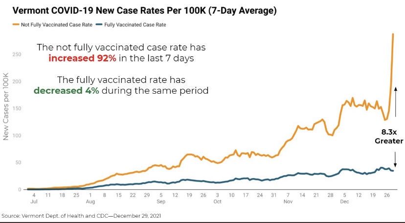 As of 12/31, we also know that a large percentage of the unvaccinated in Vermont are children and young adults. Hopefully your student is able to test prior to going back to school, and if they are positive they stay home. Please wear masks inside to help protect our youngest Vermonters and our healthcare capacity and please quarantine if you are sick.