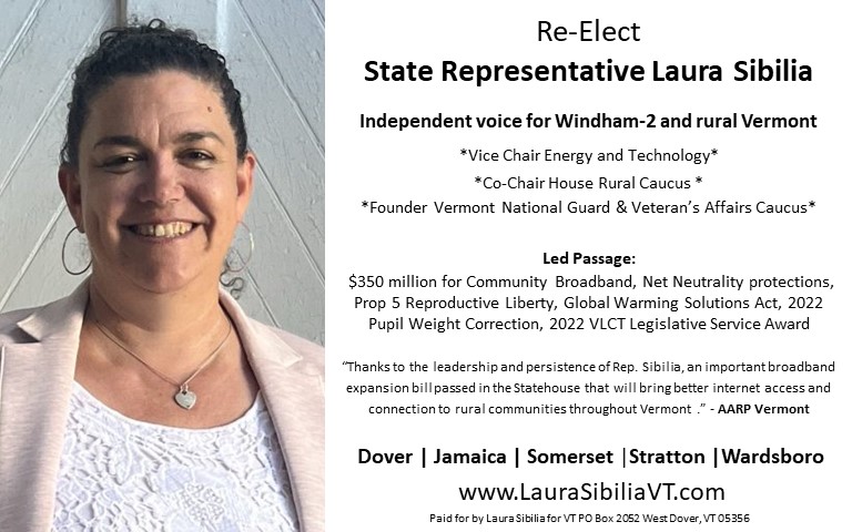 Rep. Laura Sibilia Dover, Readsboro, Searsburg, Somerset, Stamford, Wardsboro, Whitingham