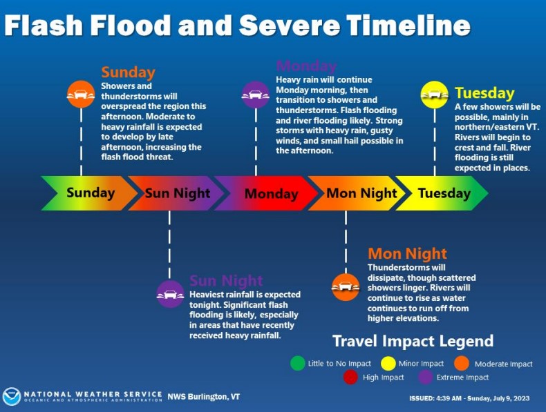 Vermonters Encouraged to be Aware of, Prepare for Significant Flood Risks Sunday and Monday July 9-10