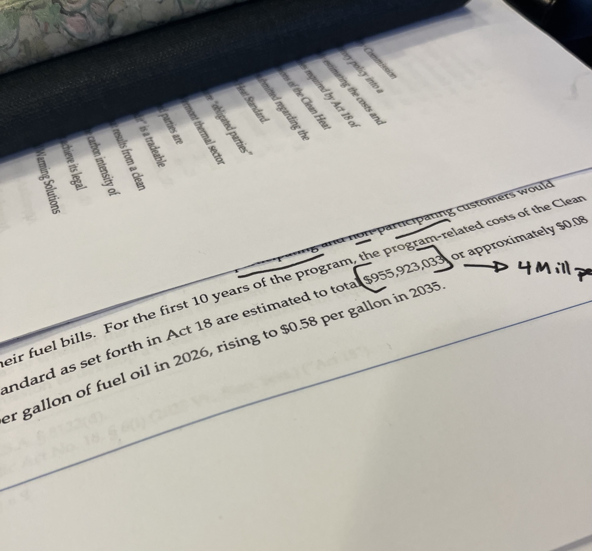 The Clean Heat Standard, designed to reduce fossil fuel use in home heating, could add an estimated 8 cents per gallon in 2026 and up to 58 cents per gallon to heating fuel costs by 2035, according to the Public Utility Commission (PUC) check back report. The policy was passed in 2023 after overcoming Governor Phil Scott’s veto.