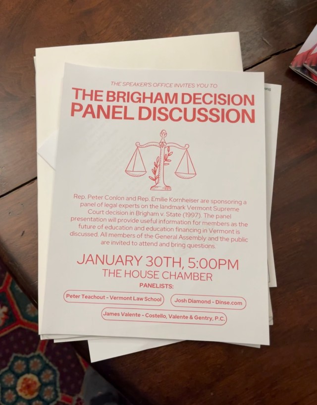 This week the General Assembly also had the opportunity to hear from several attorneys about the Brigham Decision, a landmark case in Vermont that forms the basis for our current funding system.