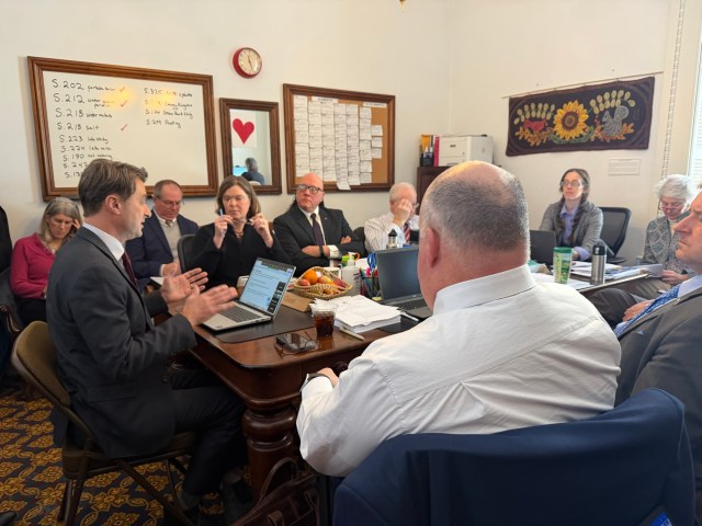 Members of the Rural Caucus talking with Senator Watson and Senator Ram Hinsdale about Act 181